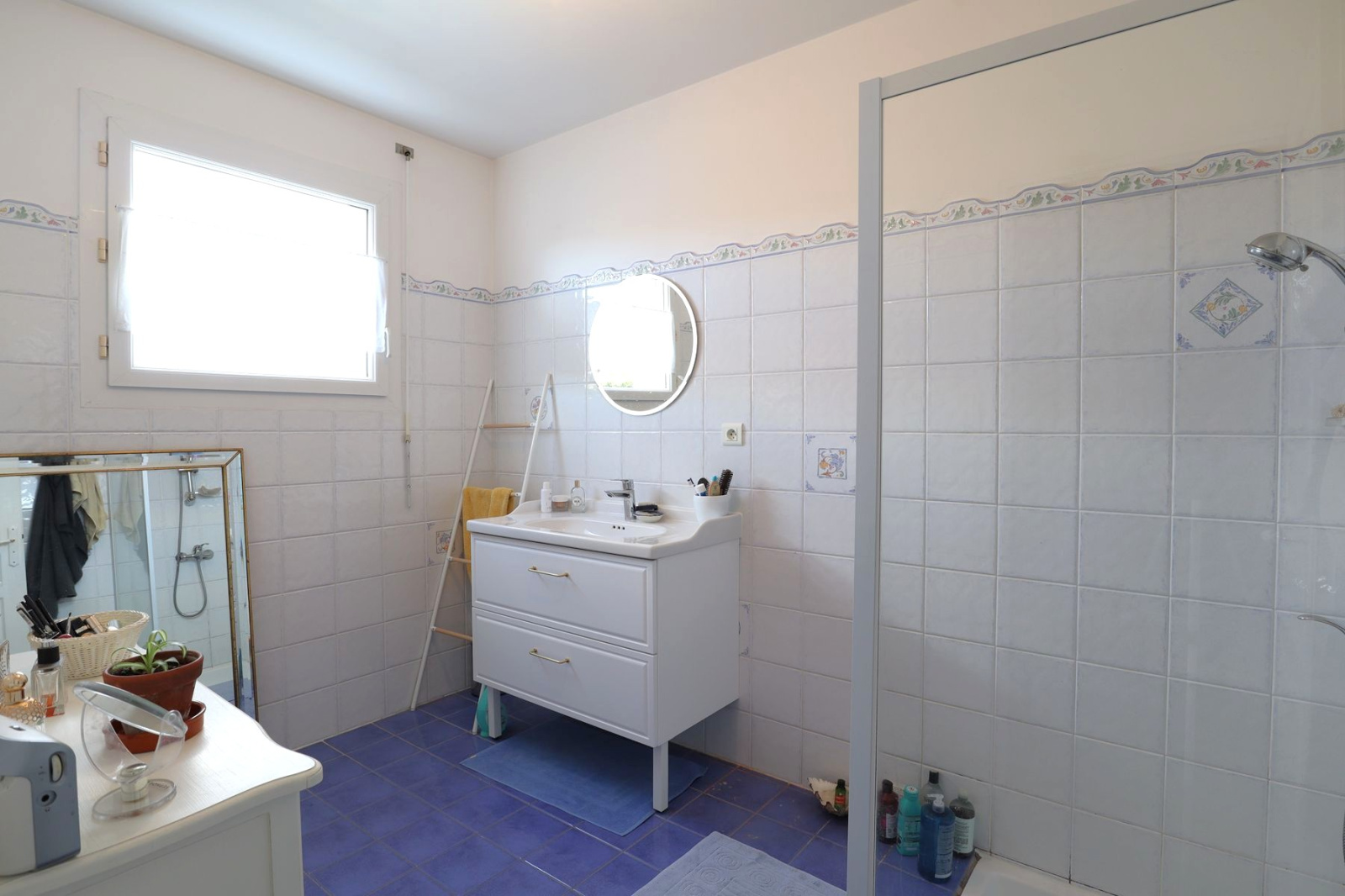 Quartier recherché LES OUDAIRIES, au CALME, proche HÔPITAL, commerces, bus et espaces verts à PIED ! Maison de PLAIN-PIED offrant : 120 m² d'habitation, entrée, BEL espace "VIE" avec cheminée et cuisine aménagée équipée ouverte, l'ensemble donnant de PLAIN-PIED sur jardin arboré, SANS VIS-à-VIS, avec PISCINE NEUVE. Première partie "NUIT" offrant 3 chambres avec placards (12.70 m², 13.40m² et 13.60 m²), salle d'eau, WC. Deuxième partie "NUIT" possible : actuellement pièce de rangement avec 2ème WC et 2ème douche. Garage avec faux grenier, CONFORT du chauffage par le SOL.