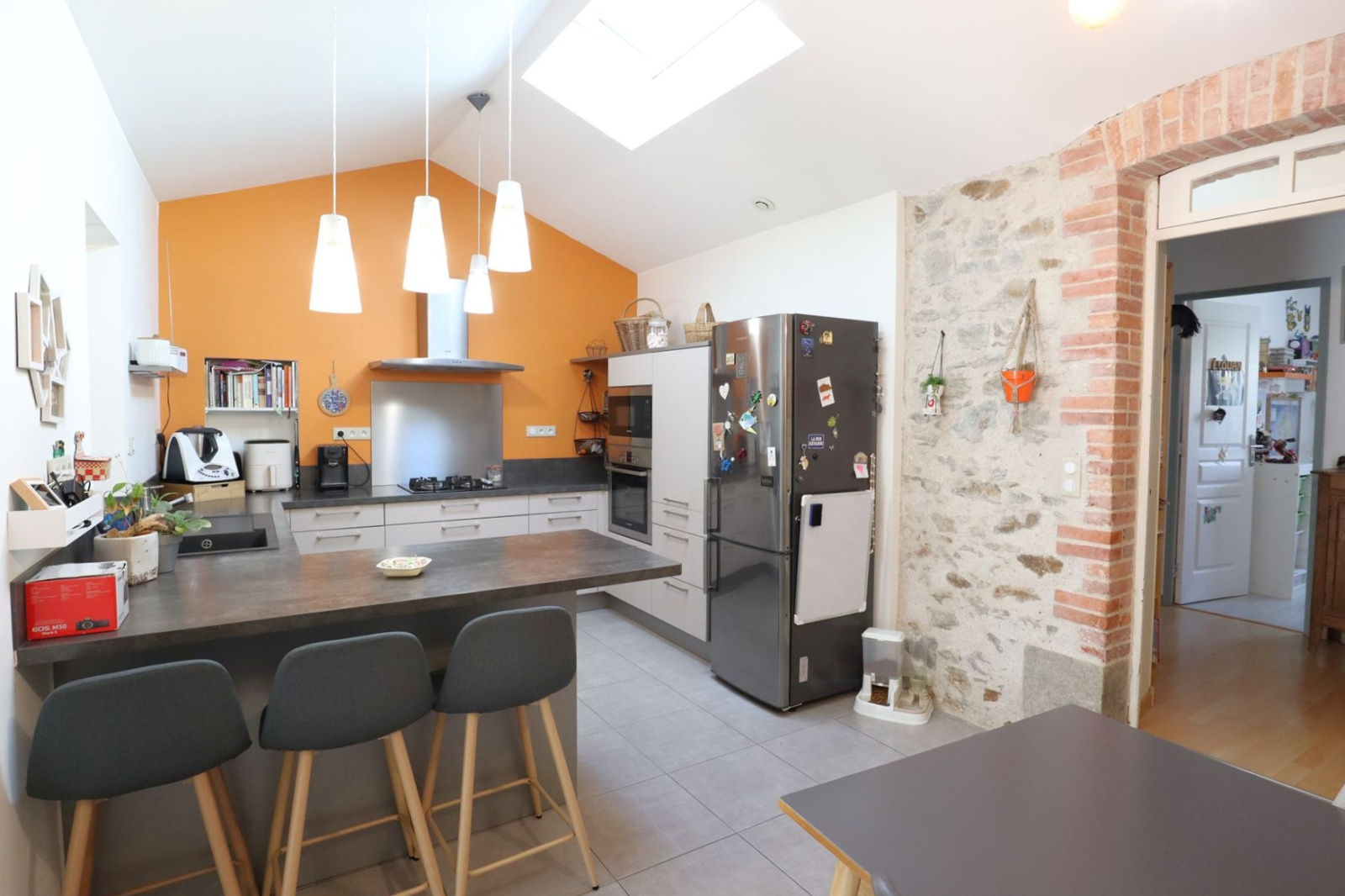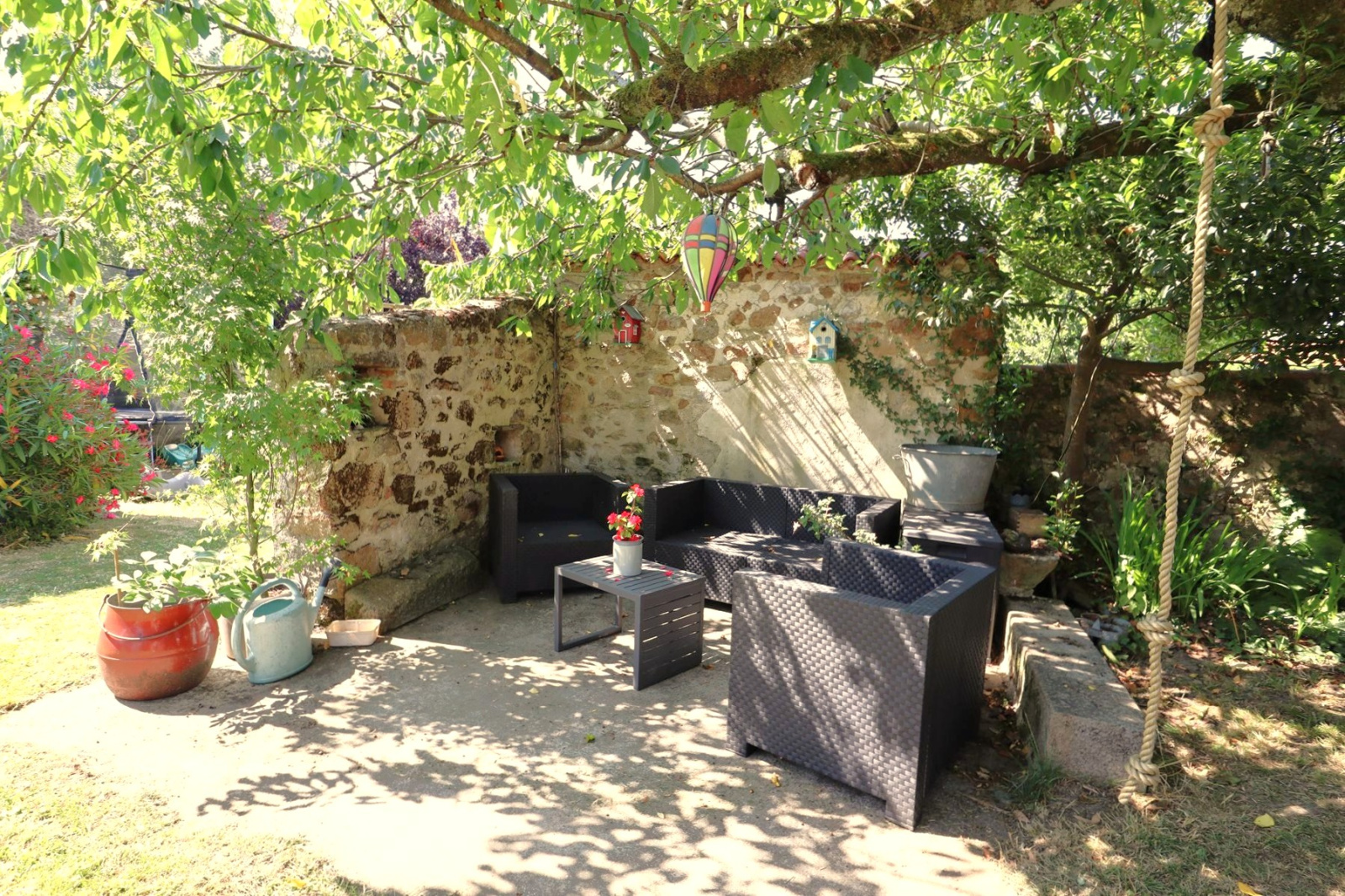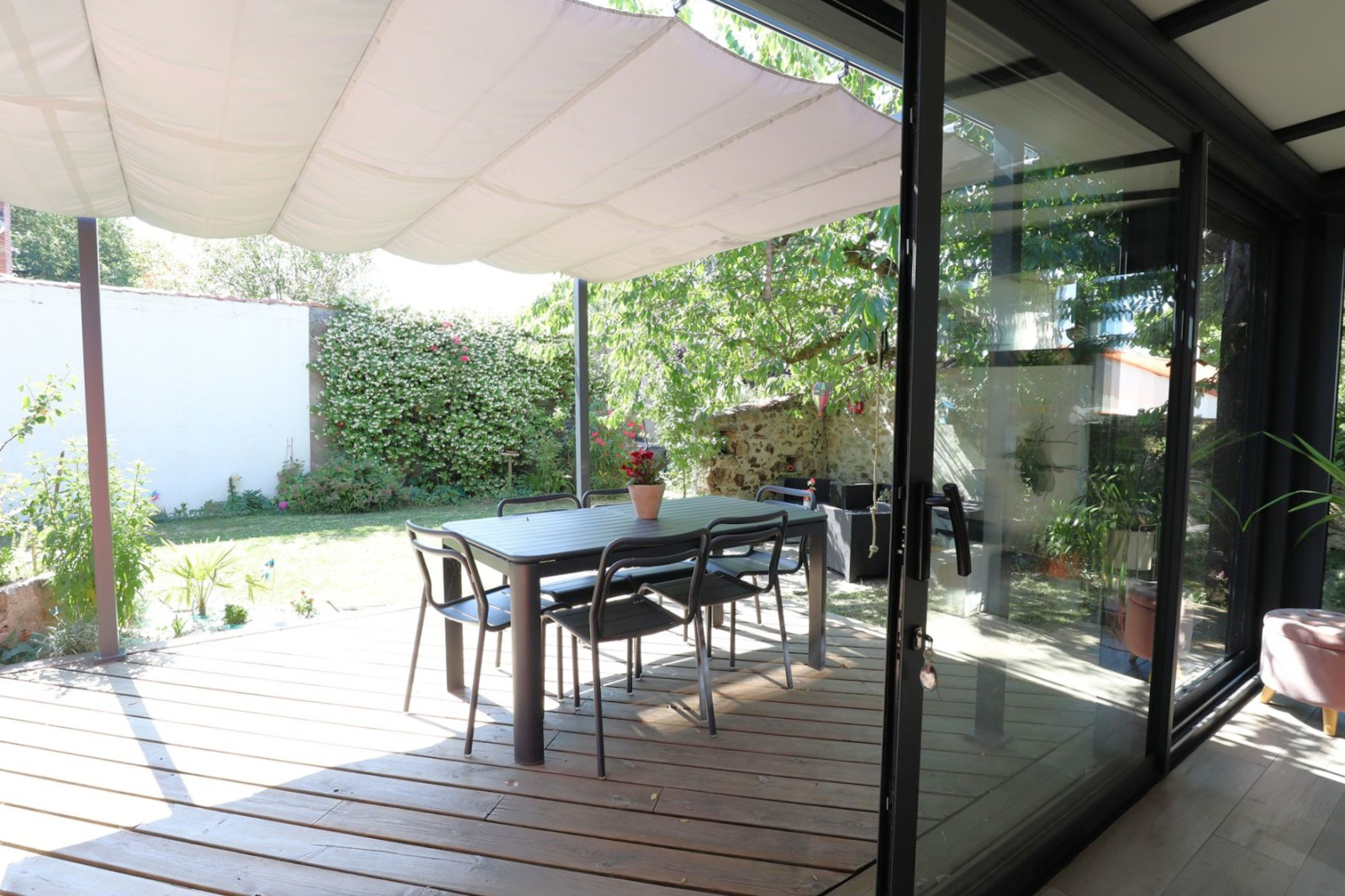 Maison en PIERRE totalement rénovée avec extension en 2015 offrant : 98 m² habitables, espace "VIE" de 40 m² avec cuisine aménagée-équipée, l'ensemble donnant sur terrasse bois et très joli jardin arboré, ombragé, SANS VIS-à-VIS. 3 chambres + bureau (11 / 9.90 / 9.60 et 8.20), salle de bain, WC, cellier-lingerie, dégagement et placards. Garage (35 m²) et dépendance de 20 m² dans le jardin. Maison très COCOONING et SOIGNEE.