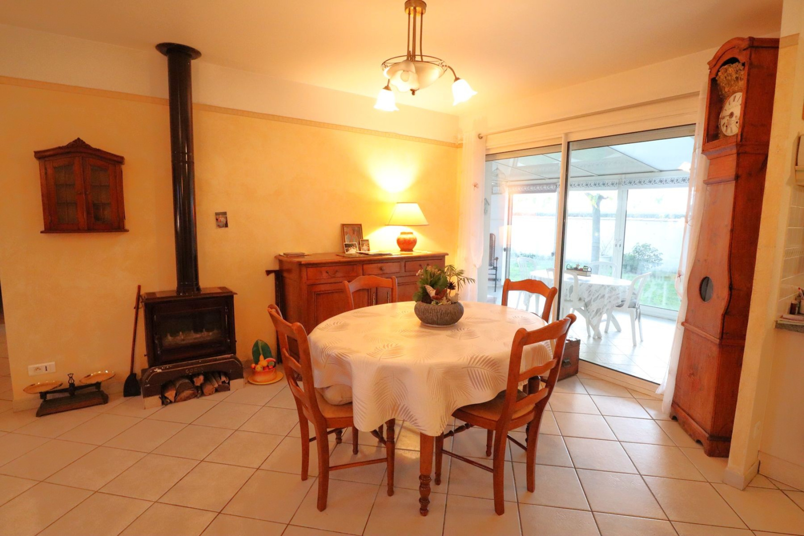 En exclusivité, au CALME, proche CENTRE VILLE et commerces à 500 m, maison de PLAIN-PIED édifiée en 2005, NON mitoyenne, offrant : 119 m² d'habitation, 100 m² habitables, BEL espace "VIE" avec poêle à bois et cuisine aménagée-équipée, véranda, l'ensemble donnant sur jardin clos, paysagé, exposé OUEST, SANS VIS-à-VIS. Arrière-cuisine / lingerie, 3 chambres, salle d'eau et WC. Petite dépendance attenante de 10 m² et garage. Possibilité stationnement CAMPING-CAR sur le côté.